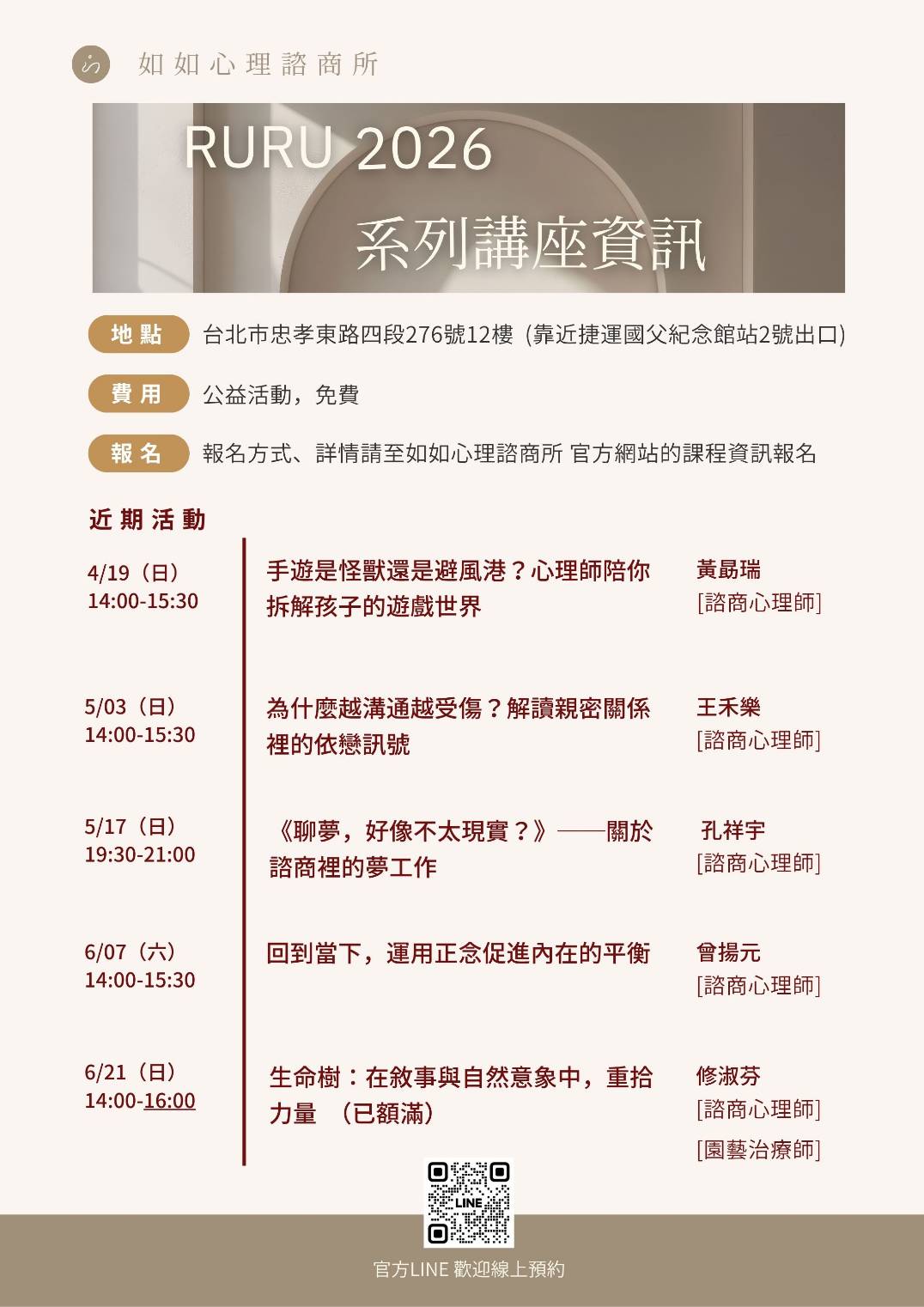 如如心理諮商所 (國父紀念館2號出口)