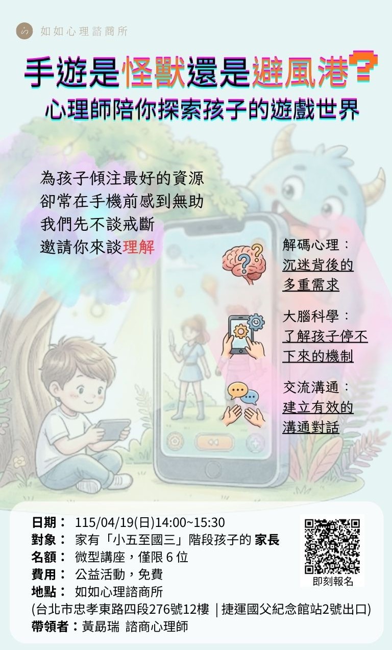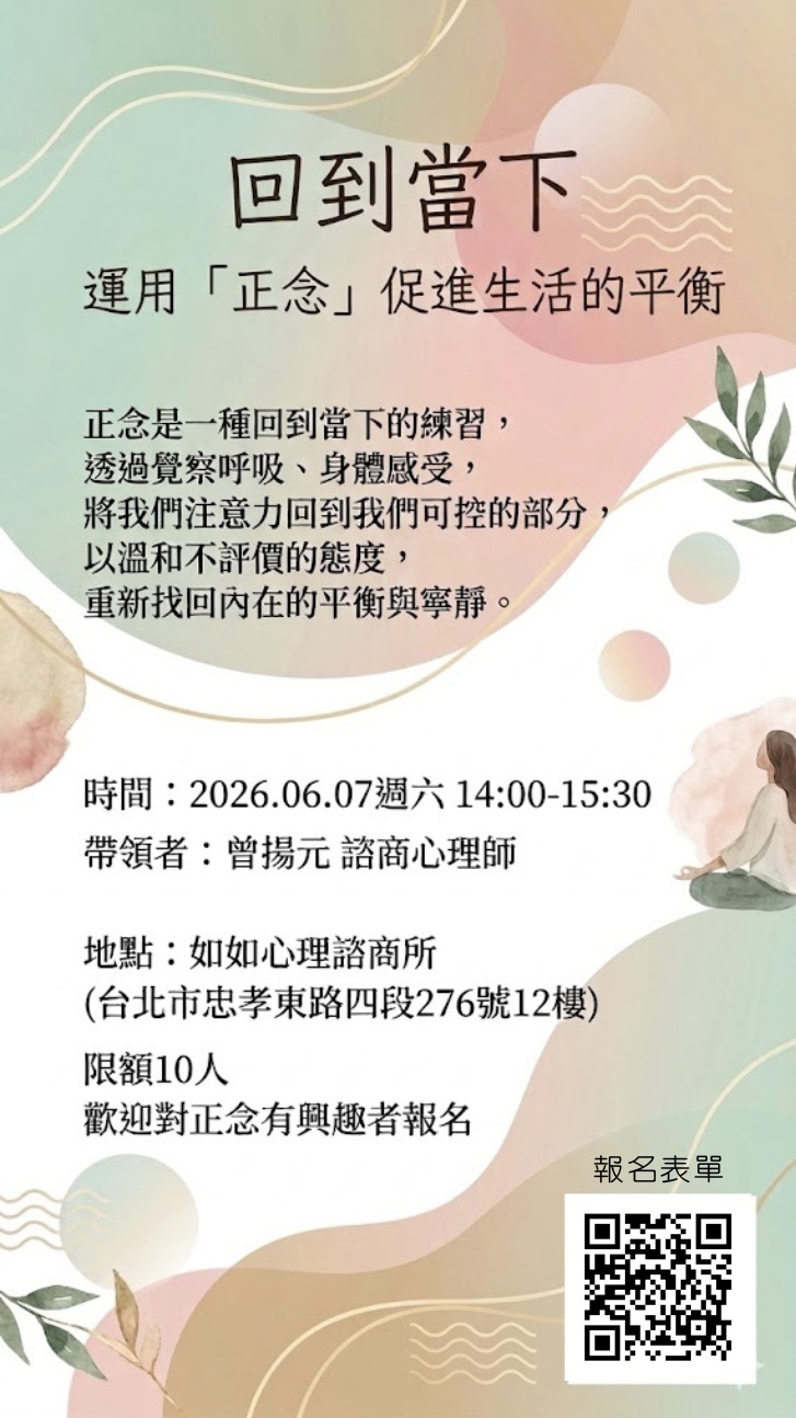 本機構提供一系列心理課程與主題式工作坊,適合希望提升情緒調適、人際互動與自我了解的民眾。